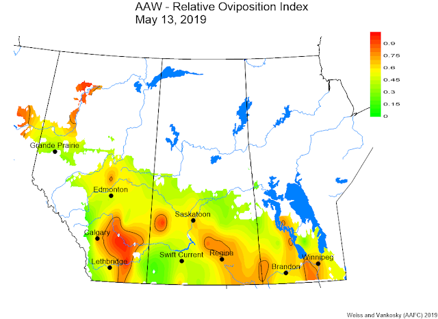 model output, BAW adults may begin to emerge by mid June so traps in Alberta,